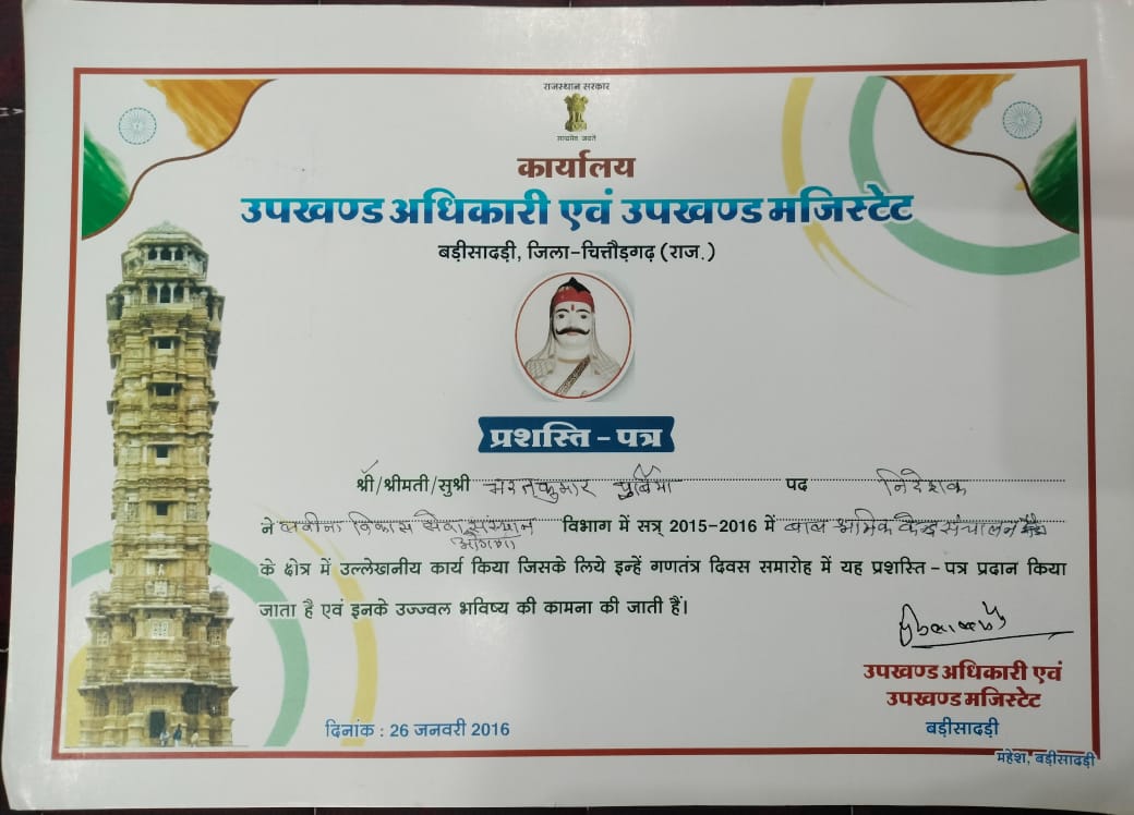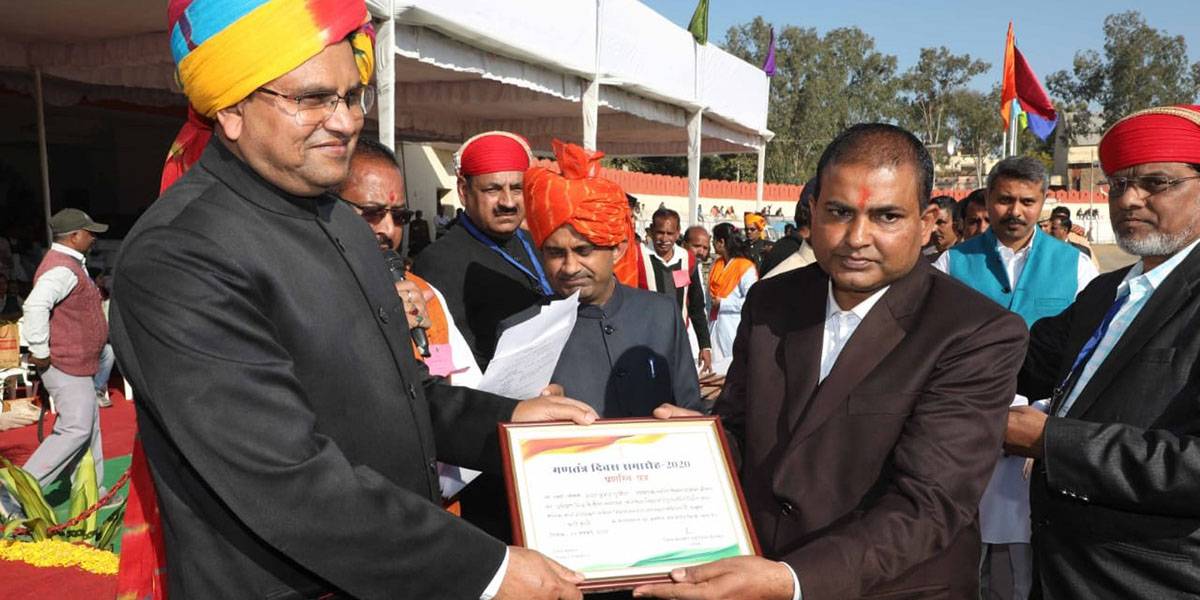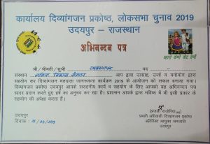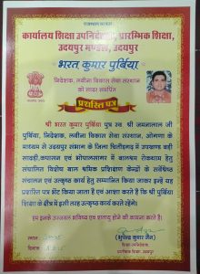 Divisional Commissioner Mr Vikas Sitaramji Bhale honouring Laveena Sansthan at the district level