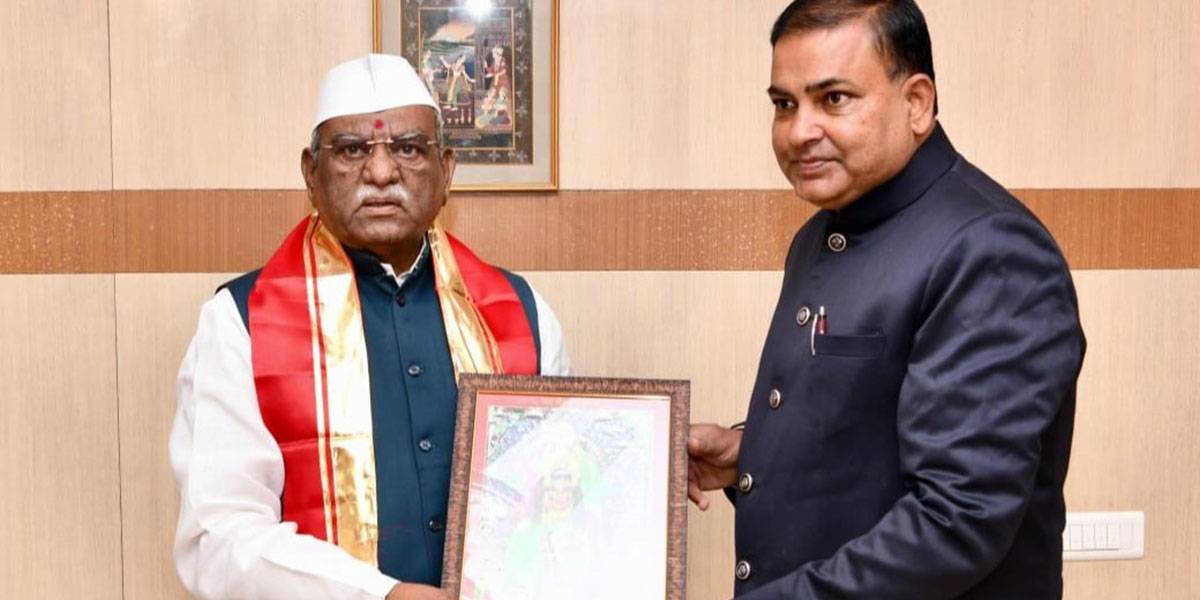 Presenting picture of Shri Nimaj Mataji to the Governor of Rajasthan His Excellency Shri Haribhau Kishanrao Bagade